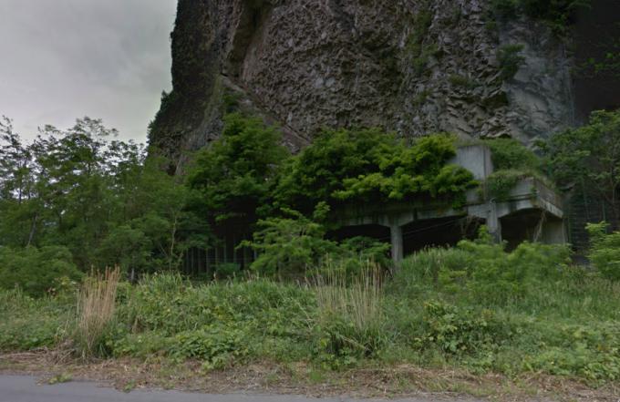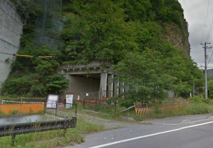 半過洞門は、上田市に所在する県道77号線の覆道です。沿道の岩鼻の落石から車と通行人を守るため、1956年に竣工したものです。大きな崩落があったため1996年に廃道となりました。廃道からは洞門を避けて東へ逸れるルートが新しい道となりましたが、現在は国道18号線の
