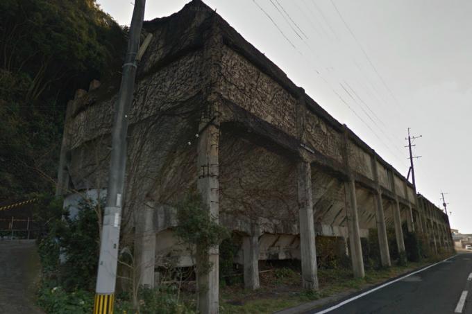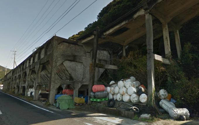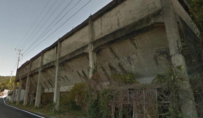 佐世保市小佐々町の炭鉱跡。藪をかき分けてたら知らぬ間に私有地に入ってた…。写真は変電所跡かな。とりあえず見たかったのは小佐々町の港にある有名なこのホッパー。この辺りで炭鉱跡を調べてる人で知らぬ者はいない、有名な物件。写真奥側が海なので、手前側の延長上に炭鉱があ