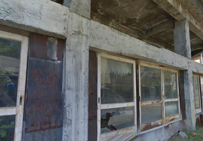 栃木県那須塩原市にある塩原温泉の廃基礎。 上部建物は現役の旅館施設だが、斜面上に作られた車寄せの...