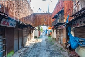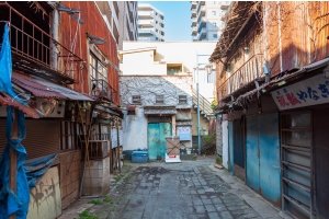 藤沢の駅近くに、有名(?)な廃墟(?)飲食朋友会があります。藤沢駅の北口から徒歩で2~3分というくらいの場所で、近くのマンションの方とかが近道として通った