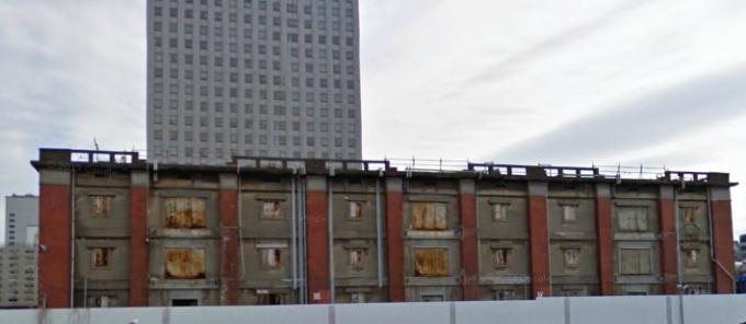 馬車道方面へ歩くと、まだあります。北仲通地区に「帝蚕倉庫」。建物の周りのコインパーキングは賑わっていますが、古びたレンガの建物に目を向ける人は少数派。一部、写真を撮っている方はいらっしゃいましたが、多くの人は目を背けているようにも思えます。再開発計画は未だ形に