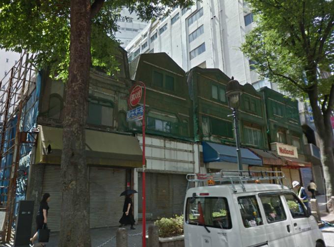 渋谷駅から繁華街を通って○ブ○○○街への向かう道すがらにある、老朽化が目立つ看板建築。渋谷という場所柄、道行く人にはほとんど気にされることも無く、寂しい姿を晒している。外壁落下の防止ネットが張られている。よく見ると、隣同士でくっついている棟続きの建物であること