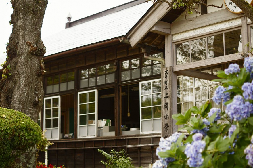 明治12年にはじまり、平成13年3月に閉校を迎えた大子町立上岡小学校。明治時代の学校建築を残すこの場所は映画やドラマのロケ地として利用され 廃校の場合、校舎の外回りや校庭を見て歩いても、子どもたちが元気に遊び回っ