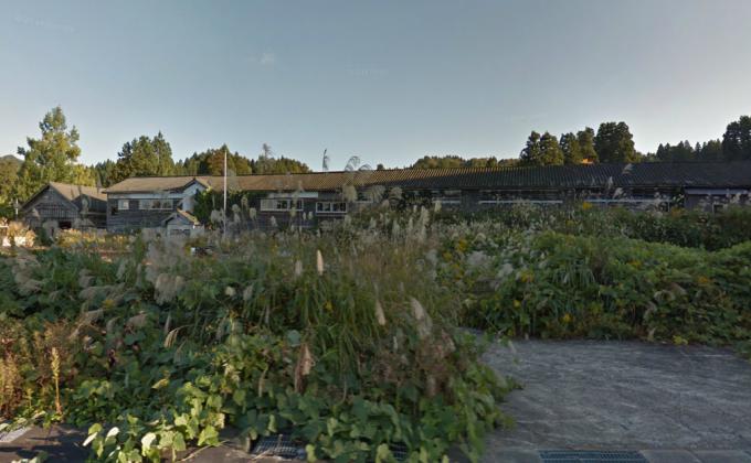 中山間地に残る、木造校舎を見に来た。昭和38年、旧入東中学校校舎に統合開校。平成13年、統合閉校。周辺の小学校の統合により誕生し、統合により閉校した小学校…学校前にあった、豪雪地特有の消火栓。高さは2.5mほどだろうが…丘陵地に建つ校舎。2階建てと1階建てとが