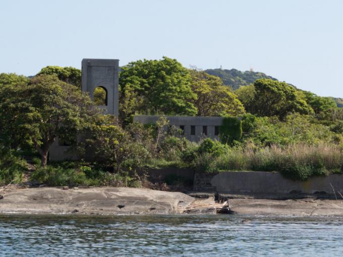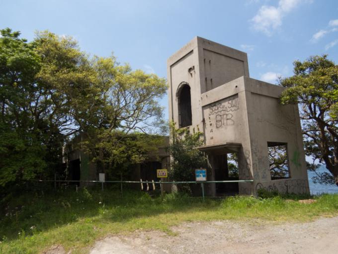 1923年に建設され、1926年に開局した送信所の廃墟です。建物は などの研究がなされていた施設です。1930年に、海軍館山基地を高島(現・鷹の島)に建設することになり、立ち退きを余儀なくされ、1932年に小湊に移転し、高島実験場は閉鎖されました。