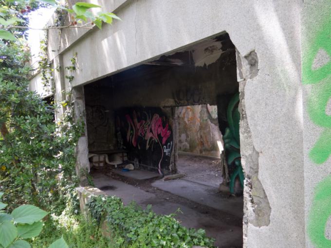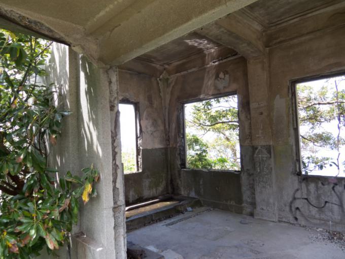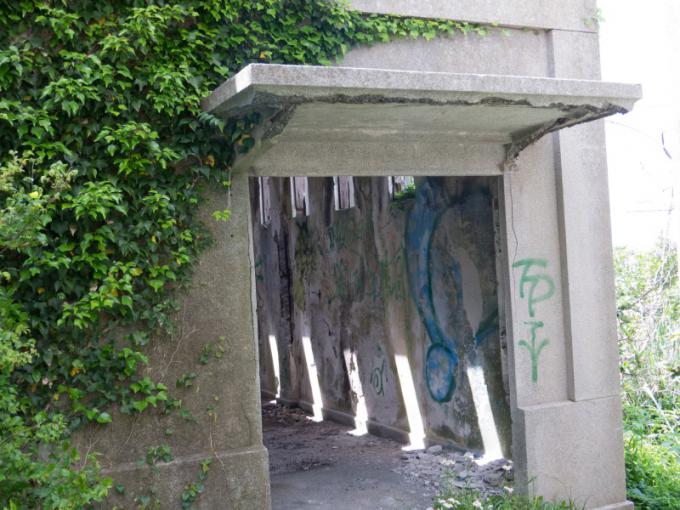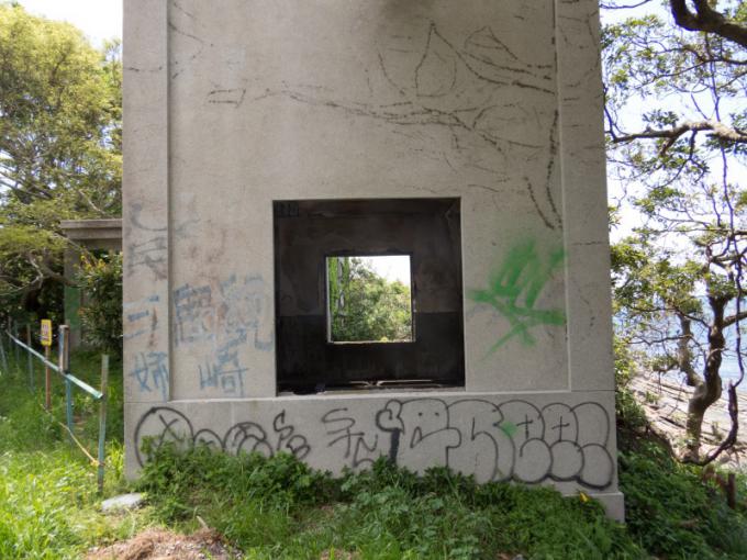 雰囲気は軍事施設の廃墟という感じなのだが・・・。 地元の方からこの施設の正体 について教えていただきました。 「この施設は「旧農商務省 高島実験場跡」です。現在、 松林になっているところにいけすがあったようですよ」 とのことで、軍事遺跡では ありませんで
