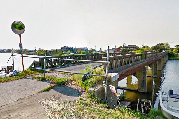 茨城県稲敷市上須田 県道206号線起点と国道125号線の交点付近だ。河川名は新利根川、すぐ左側は国道125号線の新利根橋、そしてその先に架かる橋は旧・新利根橋なんだが、どうも様子が・・・