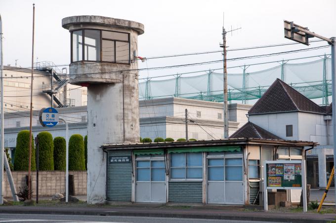 ハラダに隣接して交番があるが、敷地が異様に広い。入口には「群馬県警察本部交通機動隊新町検問所」と書かれた小屋があって、脇には監視塔のような奇妙な建物が建っている。現在使われているものかどうかは知らない。[写真説明]国道17号線で新町に入ると左手に現れる新町検問