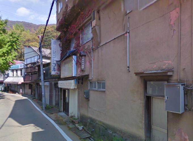 「ストリップ劇場・東山セントラル」の文字。かつては温泉街にストリップ小屋は付き物でした。夜の温泉街…