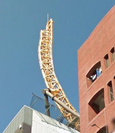 2005年頃に、「地元住民との対立」みたいな感じでドン・キホーテ屋上のジェットコースターが話題になってたみたいだけど、これがそれなんだね。絶叫の叫び声が騒音となるとか。まぁ、騒音もそうだけど、六本木の8階建てのビルの屋上にこんな異質なジェットコースターがある光