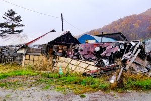 北海道札幌市南区小金湯の廃屋。国道230号線沿いに位置する。 木造平屋建て建物で、元ドライブインと....