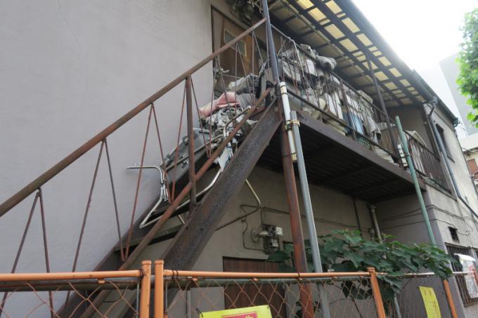 場所は西武新宿線の下落合駅からほど近い新目白通り沿いにある。往来の激しい通りにはマンションやが立ち並ぶが、その間隙に一軒だけたたずむ、異質な老朽化したアパート。行政が大義名分を振りかざし、過剰とも思える工事用のバリケードを備え付けている。バリケードで覆うことで