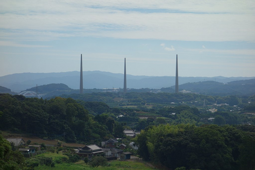 長崎ハウステンボスは華麗にスルーして国道を走る突如国道に姿をあらわす3本の塔針尾送信所。大正7年から11年まで、4年かけて作られた佐世保海上保安部の管理する「針尾送信所」の旧無線塔です。。太平洋戦争開戦へと突き進む日本は1941年12月2日のこの日、連合艦隊司