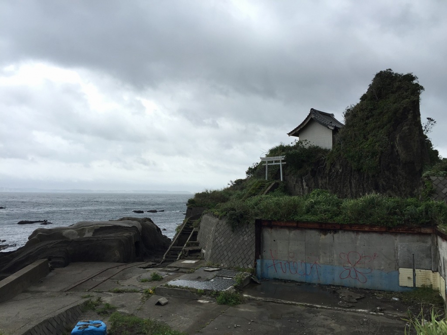 千葉県富津市金谷の廃墟。国道127号線内房なぎさライン沿いに位置する。 岬上にある神社のたもとに何....