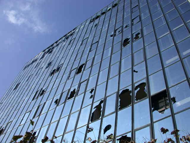 約5年ぶりだよこのホテルの探索。いつの間にか日光市になっちゃったんだね今市は・・・という訳で超有名物件『今市の廃ホテル』。正式なホテル名は諸事情により伏せておく。表から見ると何階建てなのか分からない。一面ガラス張りでとにかく印象的な外観。裏手に回ってきた。1回