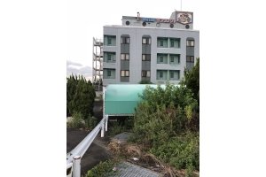 養老が誇る「ホテルフルー」の近くの廃ホテル。これで「さんりんしゃ」と読むらしい。独特のフォントがおしゃれ。情報の無い物件なので深入りせずフロントで記念写真のみ。 #廃墟 #養老 #○ブ○○○