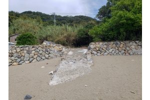 きょう2016年4月8日(金)11:57配信、KTNテレビ長崎のみんなのニュースは、次のとおり。現地は長崎市南部の大籠町赤土海岸、製塩工場跡がある砂浜のところ。自宅近くであり、午後2時頃に見学に行った。ブルーシートで覆われ、腐敗の臭いがすでに酷かった。明日以降、重機を入れ処分される。