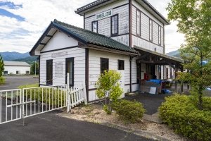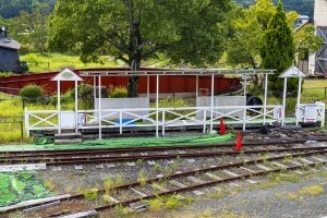 前回(2015年8月23日の日記)、旧加悦(かや)鉄道の線路跡に整備されたサイクリングロードである、加悦岩滝自転車道(京都府道803号)を丹後山田駅跡から加悦駅跡まで走りました。この日はさらに、加悦駅跡から大江山鉱山駅までの2,8kmを走り、鉱山駅跡に整備されている加悦SL広場を訪ねることにしていました。旧加悦鉄道の加悦駅です。旧駅舎を180度回転させ前後を反対にして、現在地まで移動させてきました。このブログを書いているとき、メディアでは弘前城天守閣の移動のようすが報道されていましたが、木造の建物ならではの技術で、加悦駅も同じようにしてここまで移動してきました。