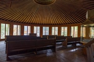 森の円形廃コテージは1971(昭和46)年に竣工したレセプション・休憩施設。 日本建築界の偉才として知....