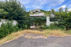 茨城県常総市崎房の工場跡。県道20号線沿いに位置する。 2階建ての小規模施設で、2012年11月時点で庇の...