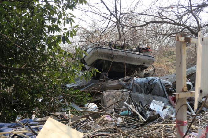 知人から教えてもらって探索することになった場所なので霊的な噂は不明です。この時の探索以外にも近くに来たときに様子を見に行ったらちょうど解体中でした。2013年現在はただのゴミ捨て場になっているかもしれません。周囲の様子はこんな感じでまさに不法投棄のメッカになっ