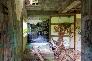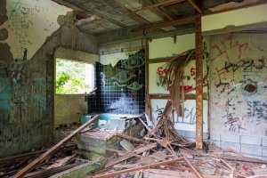 一家を惨殺したホワイトハウスの中身を見てました壁は悪い落書きがあって気持ちが悪い。やめてほしい