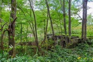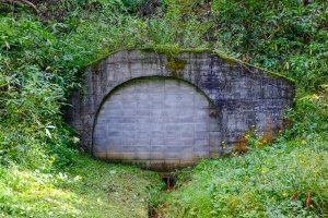 本沢地区は幌内線の終端部にあたり、坑口、選炭工場、変電所などが集中してあった 幌内炭鉱の中心地区。現在は整備事業により探索しやすくなっている。まずは、最古の 坑口音羽坑跡。10数年強出炭した後、養老坑の開発に伴い排水溝として余生を送っ てい