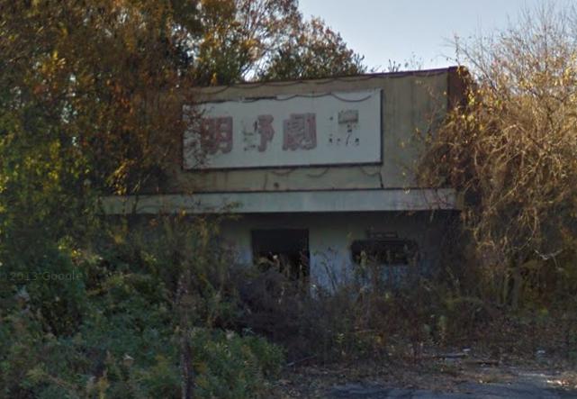 茨城県廃墟ツアー。 まずは田舎にあるストリップ劇場。 本当になぜここに?というような農家のど真ん中にある。 明野劇場の入口。 かなり迷ってしまった。 看板が折れかかっている。 こちらが劇場。 本当に「なぜここに?