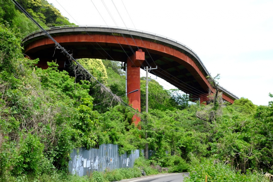 手石の特攻基地の帰り道、国道135号線の渋滞区間を避けて裏道を走っていると、突然目の前に巨大な高架橋が現れた。こんな山の中に何の橋だろう。休憩がてら車を止め、下から見上げてみる。すると雨がパラパラと降り始めた。雨宿りするために橋の下に移動する。