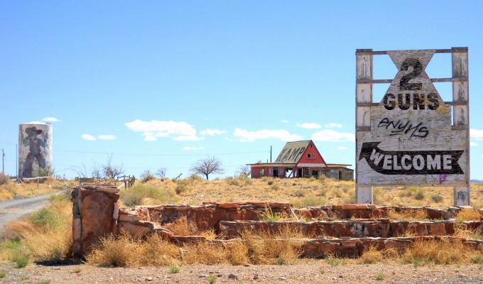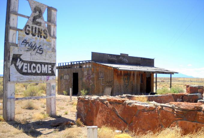 2008年2月6日 このあと僕たちはI-40に入り、数マイル走ったところにあるRoute66上の町、Two Guns へ行きます。 しかししかし、何度も言います あるのは古いものか新しいものか判り ませんが、ただTwo Gunsと書いた看板だけ。 80年代ルート66が地図