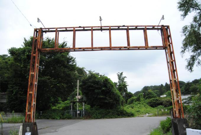 外観は本当にみすぼらしい廃墟になっている 石切場を上手い具わいに建物を建てたな……と感心してしまうほど、工夫が施された廃墟物件であった 写真2、 山本園・大谷グランドセンターの正門前に到着。洒落た門は少しずれている。正門は