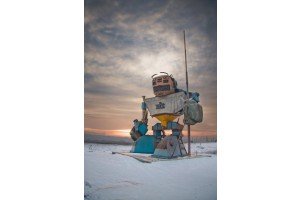 Robot KB-1 TIS near Port Yuzhny, Odessa region is called by locals "Iron Man". The height of the robot is 10 meters, weight - about 15 tons and in its construction used 40 parts of scrap-metal. The hands of Robot KB-1 TIS are made of two cabins of ZIL vehicles and the head of USSR bus PAZ 672. The robot arm keep 13-meter rod with a huge flag of Ukraine.The idea of creation of Robot KB-1 TIS was given by director of company "Trans Invest Service" Andrey Stavnitser. He was searching for sculptors to realize the idea and accidentally found Alexander Milov and Alexander Boyko in Odessa cinema.