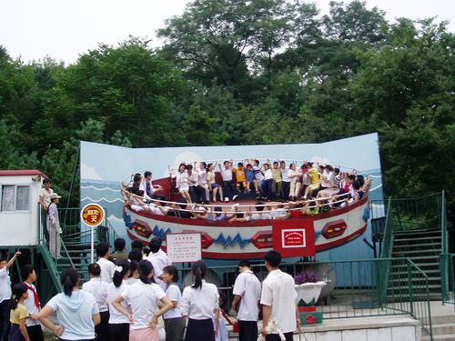 手元にある「朝鮮観光案内」という朝鮮の観光ガイドブックによると、平壌市内には聖地 万景台にある「万景台遊園地」と、凱旋門に隣接した「凱旋青年公園」、普通江の川べり にある「普通江遊園地」の3つの遊園地が記載されている。今回訪れたところがどこ
