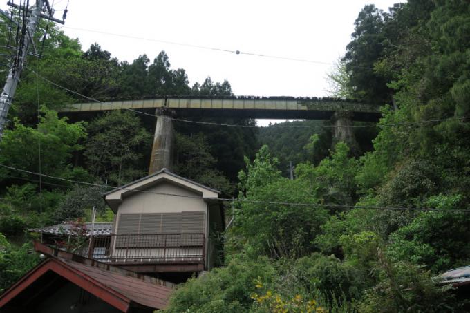 夫婦橋の少し上流には小河内ダム(昭和32年竣工)の建設資材運搬の為にを昭和27年~32年までの間だけ運行された東京都水道局小河内線(奥多摩駅~水根駅間)の日原川橋梁(RC開腹アーチ橋)が架かっています。こちらは結構知られた存在らしく