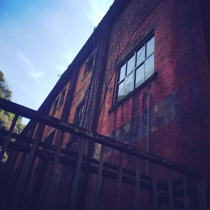 地上に上がってみる。売り地らしいが、誰か買うだろうか?上に残っていた、看板らしきもの。残念ながら割られていて名称は分からない。ここから番外編。近くの天ヶ瀬ダムというのを見に行ったら、その近くにこのような建物が・・・ダムの脇にたたずむ、かなり時代ものの煉瓦の建物