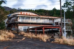 場所は宮崎県えびの市の国道221号線脇の廃ドライブイン「ループ茶屋」 この付近は 平行する九州自動車道が最後まで未開通だった区間で、かつては沿道にドライブインが 多数ありましたが、今では通る車も少なくその殆どが廃墟になってしまいました。