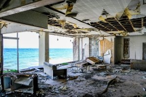 さて今回は、とあるペンションの廃墟。海沿いにあるこの廃墟は、道からは見えない。脇道から海沿いを走ると、今回の廃墟を発見。