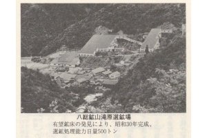 八総鉱山福島県南会津郡田島町・館岩村八総鉱山は、徳川時代より採掘されており本格的には昭和25年~44年まで20年間にわたり住友金属鉱山が八総鉱山として操業した、田島町側に通洞坑を設け選鉱場を設置し銅、鉛、亜鉛、硫化鉄を浮選方式で日産500トン処理20年間で粗鉱