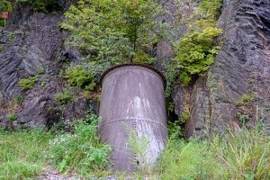 間藤水力発電所跡. 明治10年(1877)より足尾銅山を経営した古河市兵衛は、今までの 銅山の動力源である、薪、木炭に代わるべきものとして、ドイツのジーメンス電気機械 製造会社のヘルマン・ケスラー技師の勧めにより、はじめて水力発電にふみきり、明治 23