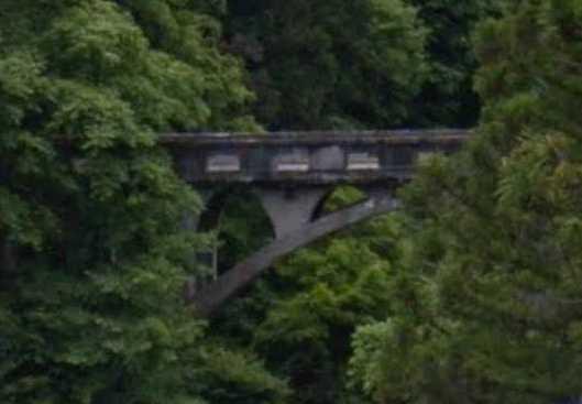 国道19号が塩尻市から、楢川村に入って左岸に渡った場所に架かるアーチ橋。 おそらくは旧道だと思われるが、御覧の様にすでに廃道状態。 長野県塩尻市 1935年(昭和10年) 上路コンクリートアーチ 1連ツ黴