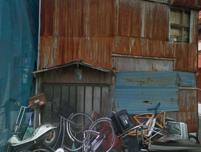 東京都葛飾区宝町2丁目の廃屋。京成本線の線路沿いに位置する。 トタン張りの2階建て建物で、2010年時...