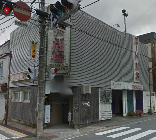 片倉館から北東方向へ200mほどいった四つ角に「ヌード劇場」という過激な看板のついた建物がある。ストリップ劇場「諏訪フランス座」だ。