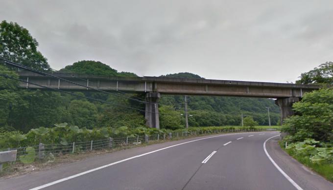 白糠線の終点付近です。当時「釧路二股」って駅名の通り二股集落ですが、実に寂しい集落でした。 駅名にそって名付けられた北進小中学校の名板。現在では休校らしいです。 国道からいたるところで、こんな近代的な橋が現れます。 左下は国道です。それをツ黴