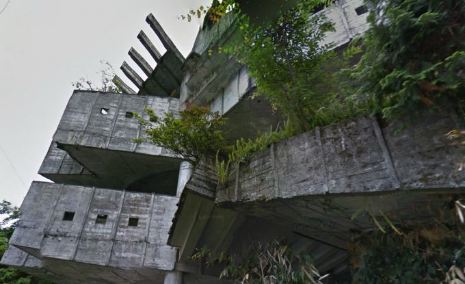 一部ではとても有名な廃墟です。場所が不明だったけど、見つけました。桁違いにすごいんだよね。全体像は撮れない。中は厳重に管理されてるようで、入るのはとても危険なんで入りません。ここは単なる廃墟じゃないんですよね。「異端の建築家」と呼ばれた渡邊洋治の建築です。[軍
