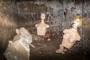 ここは伊豆の下の方にある廃墟・・・・ではなくちょっとしたお化け屋敷です。地元の手作りのお化け屋敷のようでこのようにモルタルで無理矢理固定された手首などを見ることが出来ます。マネキンもご覧の通り、何故か身組はがされていました。結構みんな楽しそう。ブレブレ、僕だけ