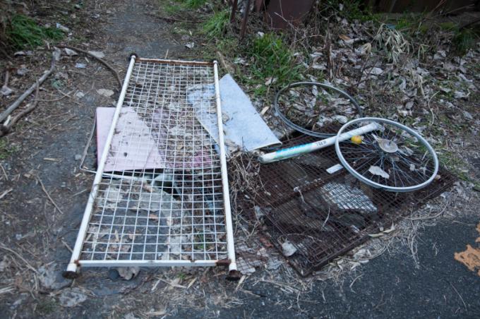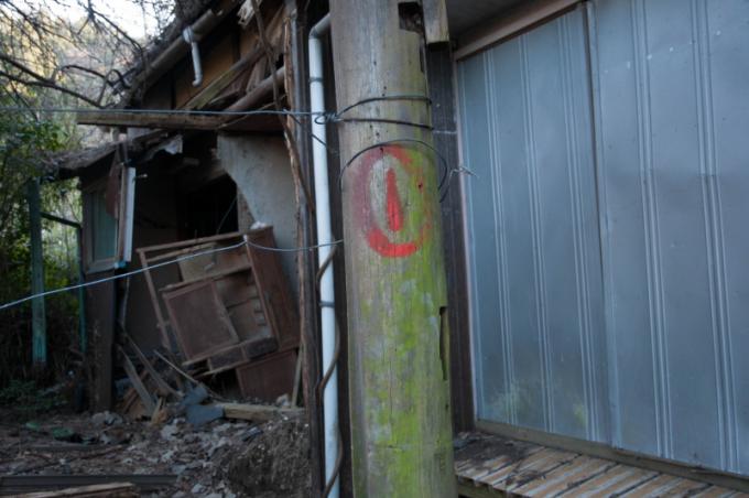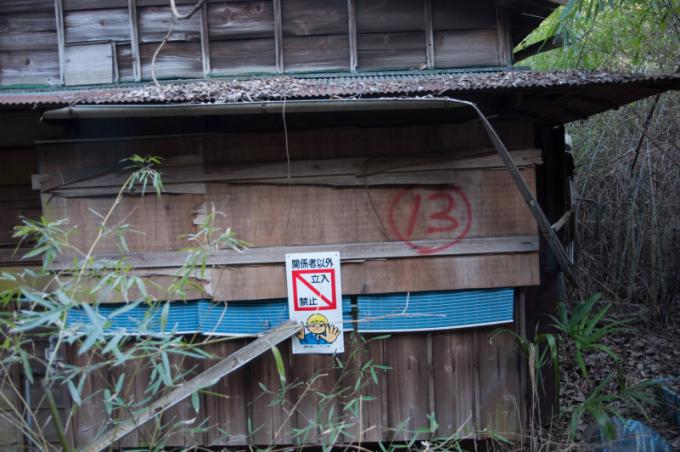 その一つは田浦のゴーストタウンです。3年前に調査した時、誰も住まなくなった家は放置されたままになっていましたが、久しぶりに足を踏み入れてみると、、、ん?針金が張り巡らされています。こちらには立入禁止の看板まで。汚れ具合から察するに比較的新しいようです。3年前、