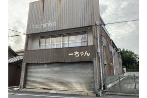 とある所にある紡績工場の廃墟の看板荒野に建つ工場ドアがありますがその横の壁がありません体育館みたいです黒板2工場(甲)は全国制覇のれんの向こうに行ってみます人影