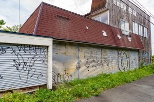 この桜島苑って壁も剥がれちゃってひどい外観だけど、閉めちゃったからってこうなっちゃうものかな、悪いけどボクは「いい味や~」と撮らせてもらいました、飲食しての感想じゃなく、潰れた後でこれはごめんなさいね。ボクにとって男鹿半島を周回する県道59号線で立ち寄るところ