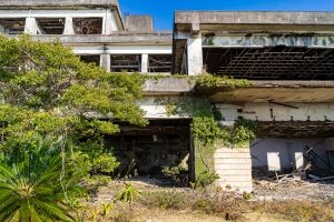 四階建ての中規模ホテル。都井岬の廃墟群では比較的目立たない場所にある。一部に解体した跡が見られ、窓ガラス等は残っていない。